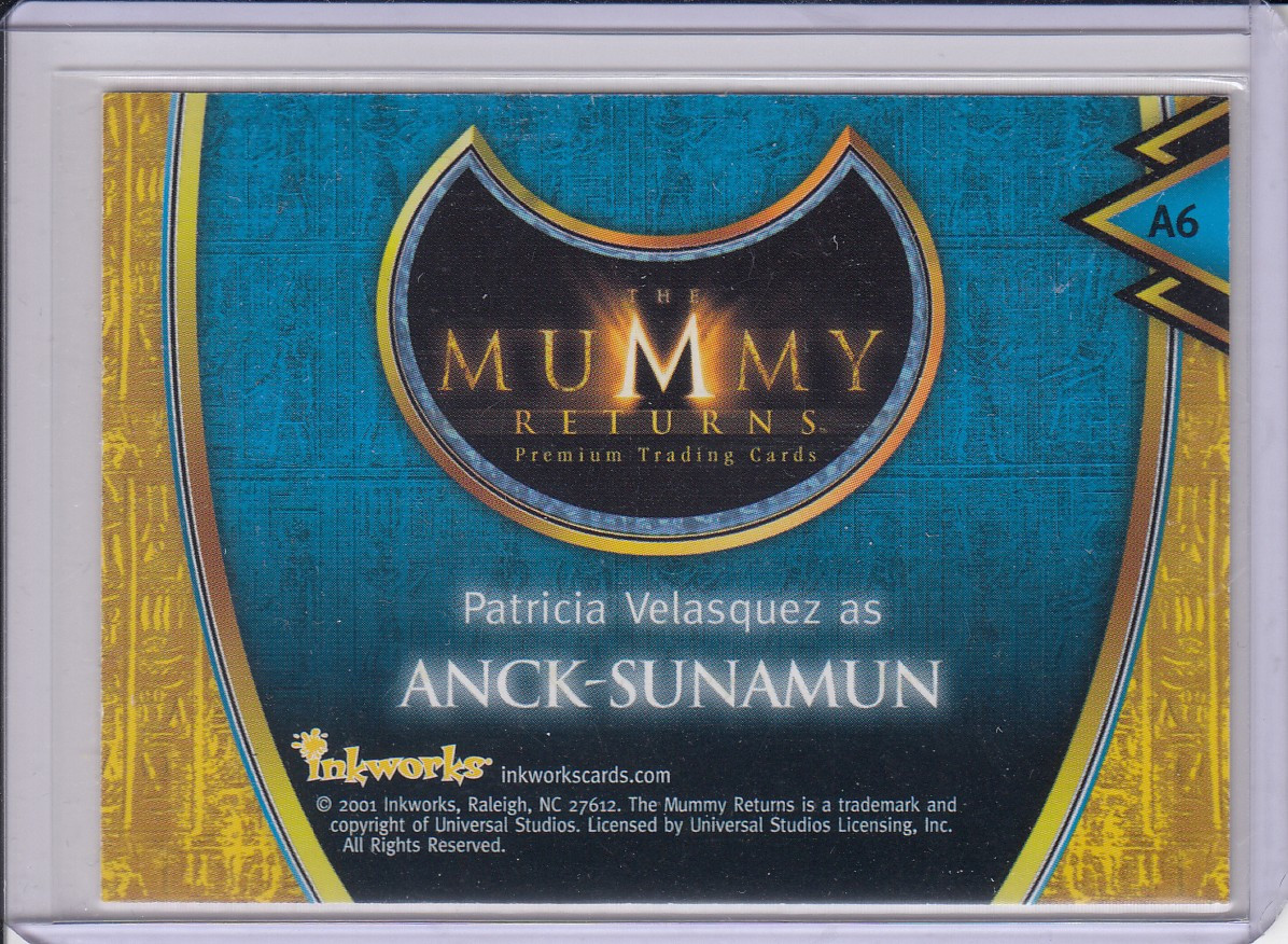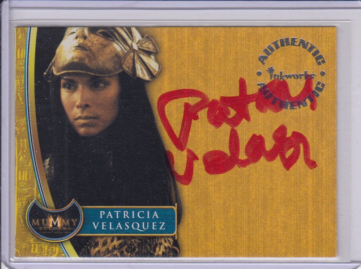 This striking collector’s card features the authentic signature of actress Patricia Velásquez, who portrayed the mesmerizing and treacherous Anck-Su-Namun in The Mummy (1999) and The Mummy Returns (2001).
