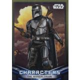 Accented with gold foil highlights and printed on premium stock, this insert from the Characters subset is a standout collectible for fans of The Mandalorian and Star Wars card collectors alike.