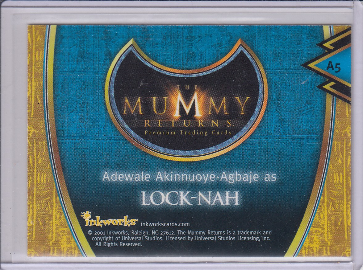 This authentic autograph card features the signature of Adewale Akinnuoye-Agbaje, who brought intensity and menace to the role of Lock-Nah in The Mummy Returns (2001).